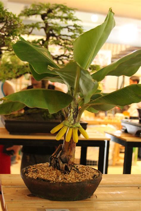 A bonsai banana tree is a miniature version of the traditional banana tree that is cultivated for its aesthetic appeal. Bonsai, which translates to tray planting in Japanese, is the art of growing and shaping small trees in containers. Bonsai enthusiasts carefully prune and train the tree's branches and roots to create a harmonious and balanced miniature representation of a full-sized tree. The bonsai banana tree is a popular choice among bonsai enthusiasts due to its lush foliage, unique shape, and exotic fruit.